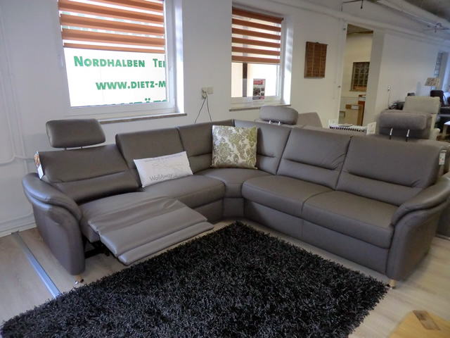 Polstergruppe TL 3021, Sitz: medium, SH: 44 cm, Sofa 2.5 sitz Klapparmlehne links, Longchair Armlehne rechts fest inkl. manuelle Kopfverstellung Stellmaß: 228 cn + Klapparmlehne x 170 cm Abholpreis ohne Deko